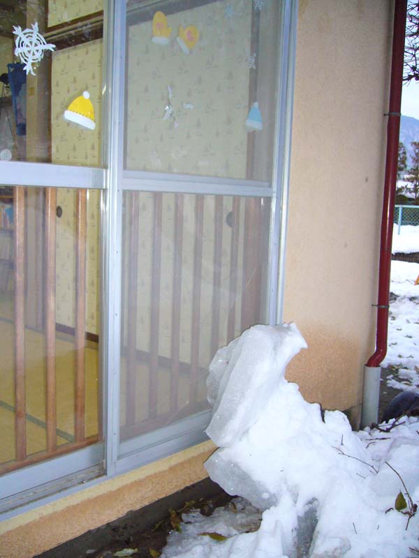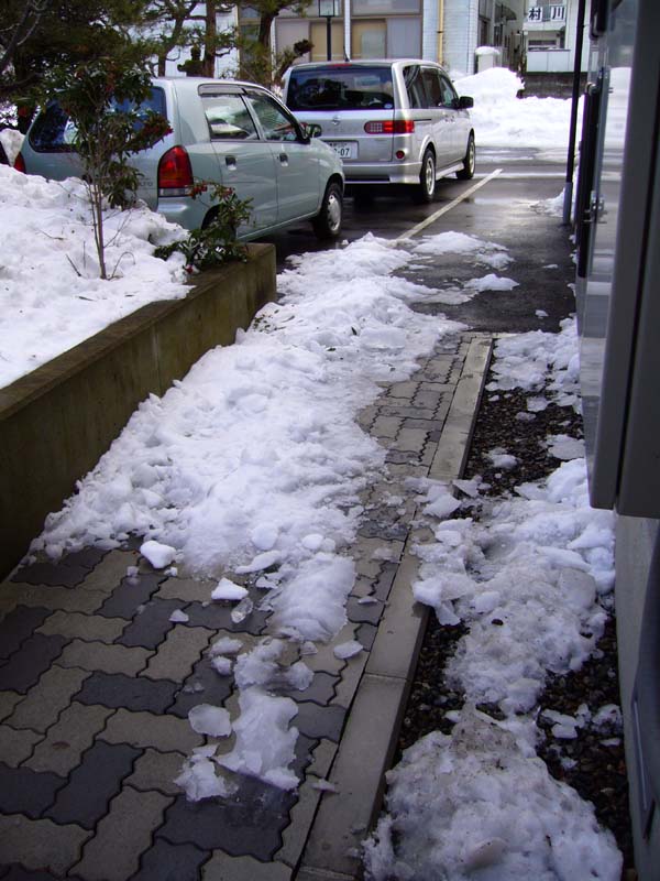 こういう陽気になると、町の中のあちこちに、「落雪注意!」の張り紙が出回ります。商店の軒下とか、危ないんですよ。